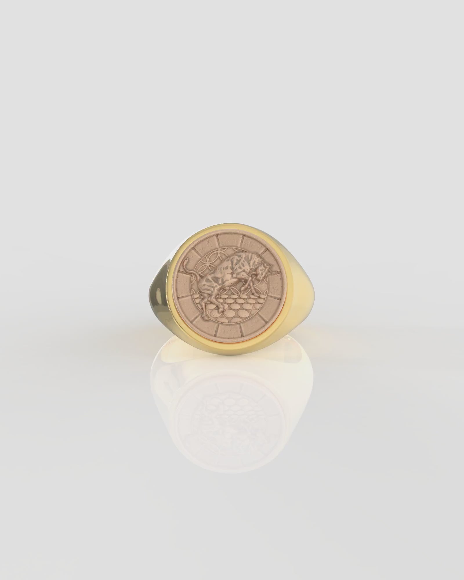 The Bull Large Signet Ring in 9k Yellow Gold / 9k Rose Gold by Wilson Grant
