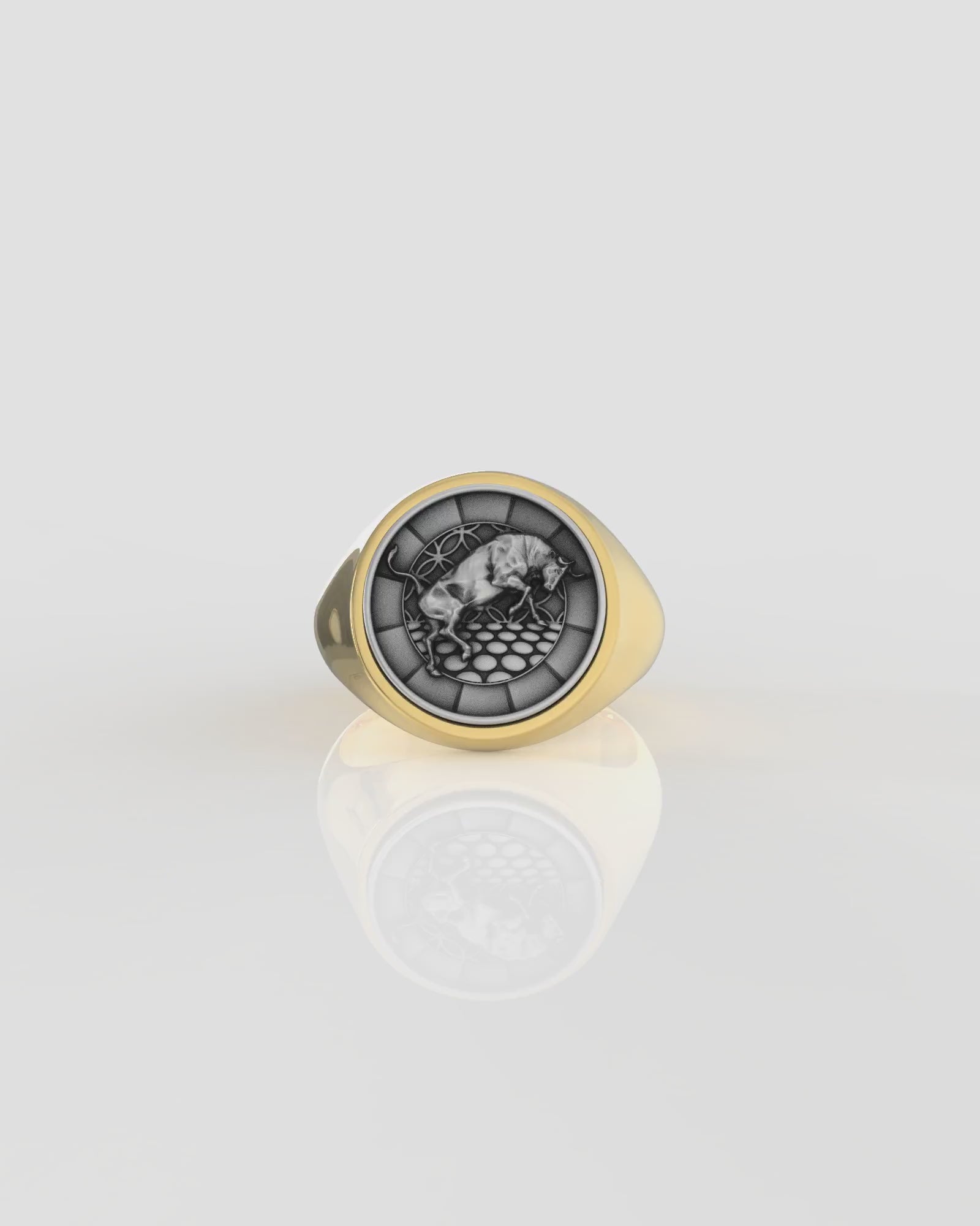 The Bull Large Signet Ring in 9k Yellow Gold / Sterling Silver by Wilson Grant