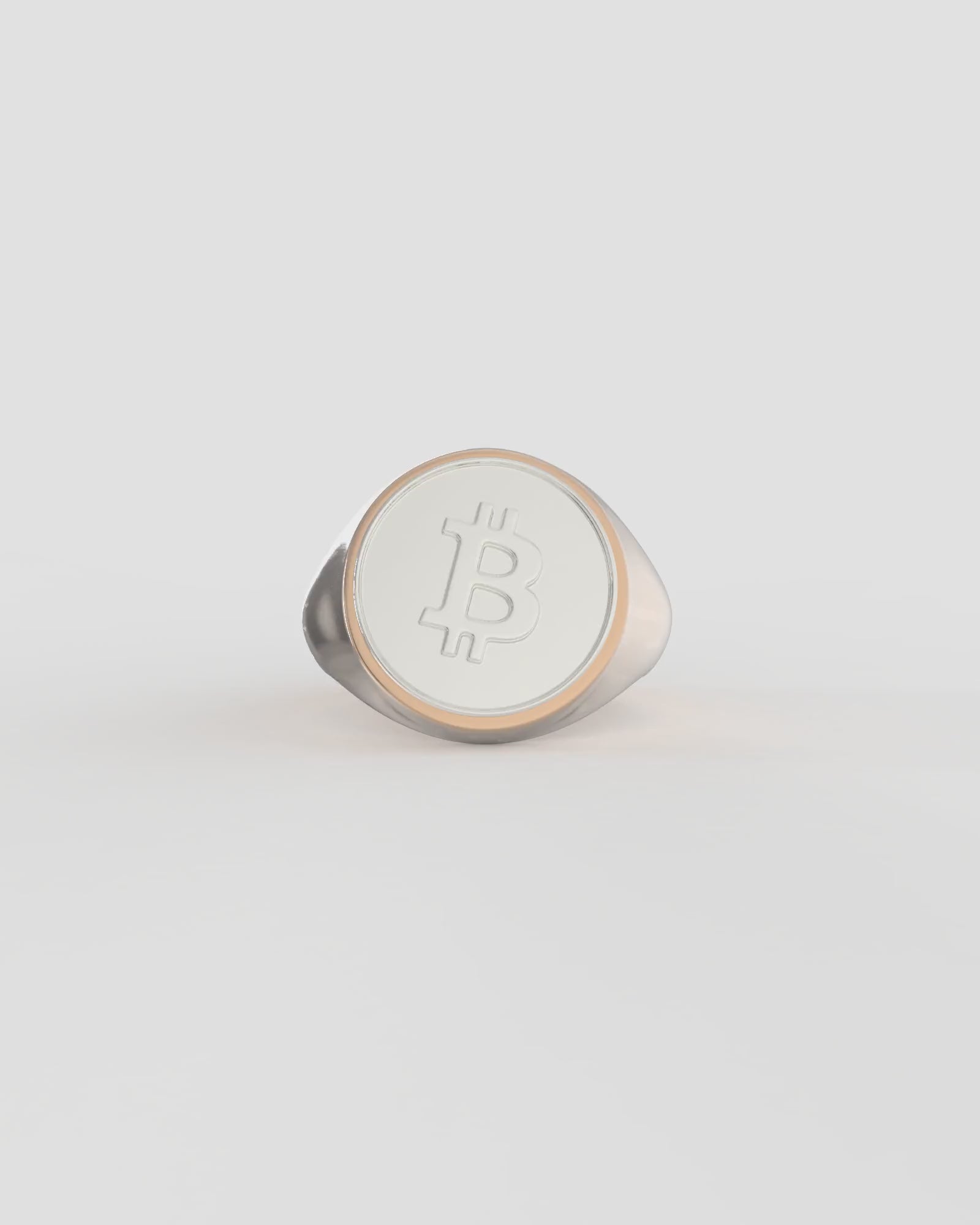 Large Bitcoin Crypto Ring in 9k Rose Gold / Sterling Silver by Wilson Grant