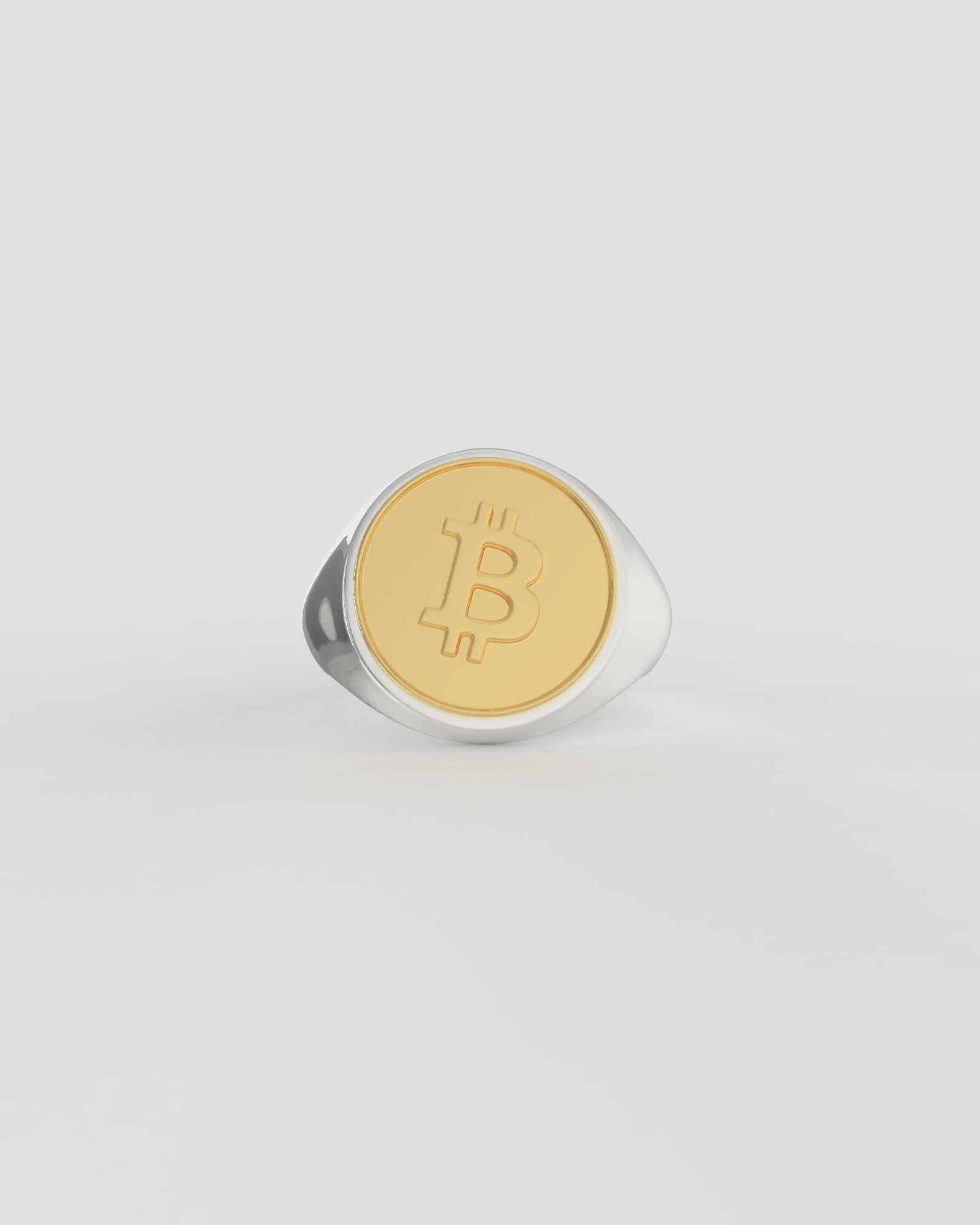 Large Bitcoin Crypto Ring in Sterling Silver / 9k Yellow Gold by Wilson Grant