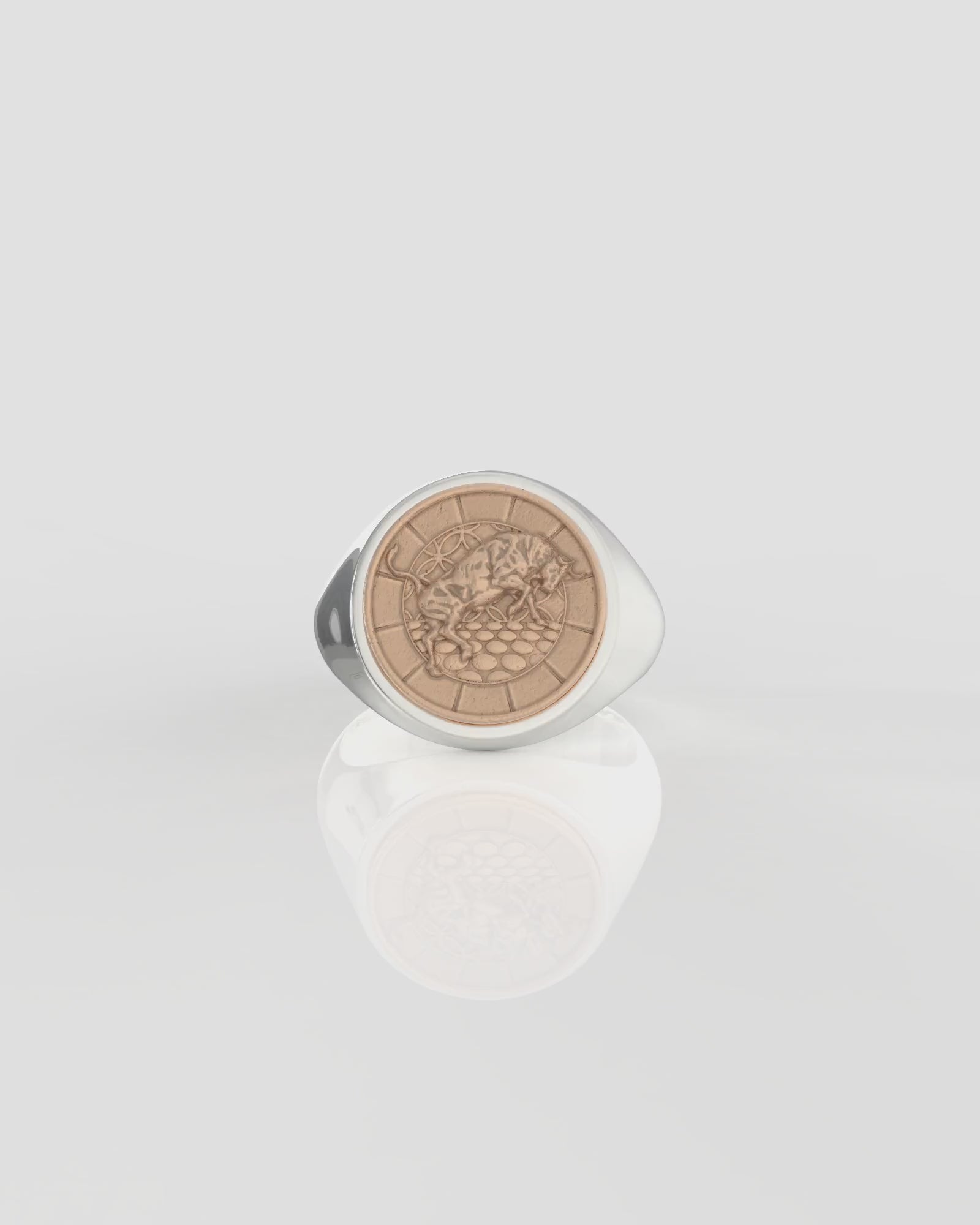 The Bull Large Signet Ring in Sterling Silver / 9k Rose Gold by Wilson Grant